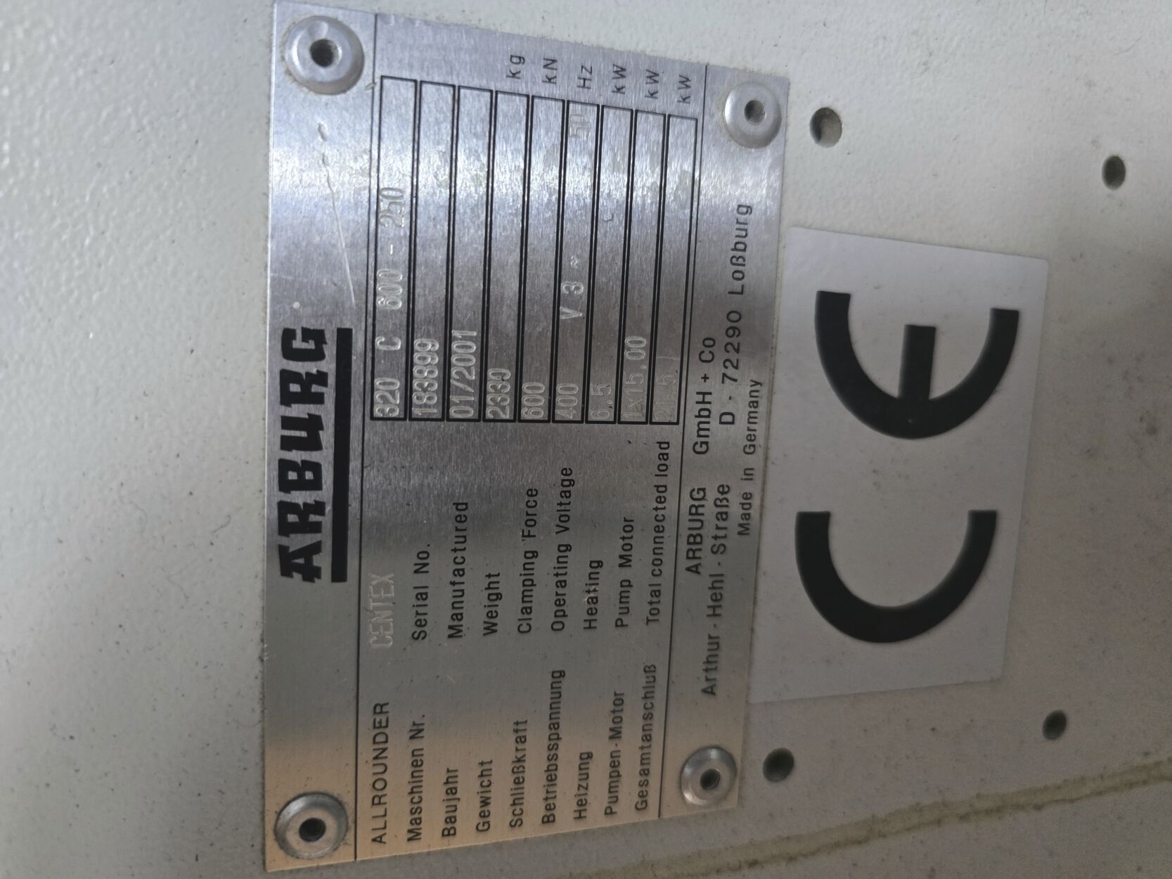 Maschinenbezeichnung: Spritzgießmaschine 320 C 600-250